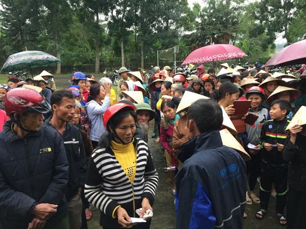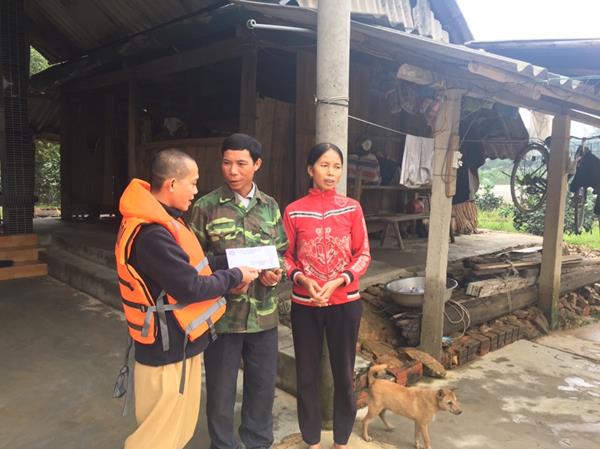 Phái đoàn đã được sự tận tụy của Đại đức trưởng BTS GHPGVN huyện Hương Khê và sự giúp đỡ của chính quyền địa phương sở tại công việc đã hoàn tất. Đoàn đã phát 294 phần quà mỗi phần 500.000đ (năm trăm ngàn đồng chẵn) bằng tiền mặt, tổng cộng là 147.000.000đ (một trăm bốn mươi bảy triệu đồng chẵn). Thăm và hứa sẽ tu tạo phần cửa cho 1 ngôi nhà có hoàn cảnh bố mất, mẹ bị bệnh cột sống không đi lại được, gia đình có 7 cháu nhỏ còn đi học (chưa hổ trợ). Phần quần áo cũ đoàn gởi lại tại chùa Phúc Linh nhờ các Phật tử sau khi nước rút sẽ gởi đến đồng bào sau.