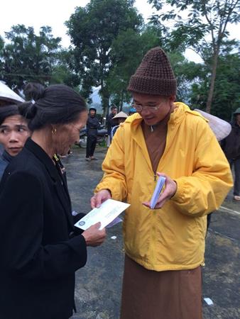 Chuyến đi kết thúc, mọi người ai cũng hoan hỷ. Ngưỡng nguyện Tam Bảo thiêng liêng gia bị cho người dân vùng lũ sớm khắc phục mọi hậu quả. Mong tiếp tục nhận thêm nữa tấm lòng của mọi người hướng về đồng bào miền Trung. Ban tổ chức xin cảm tạ Chư Tôn Đức và tri ân liệt quí vị!