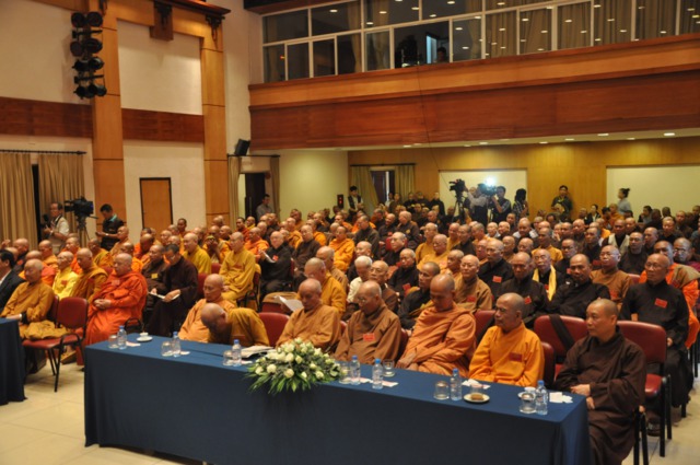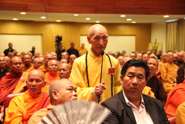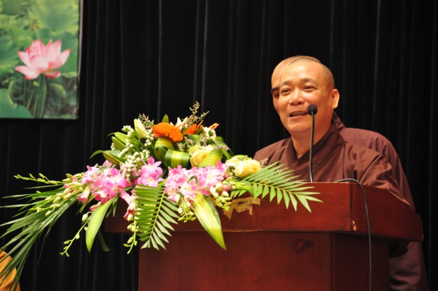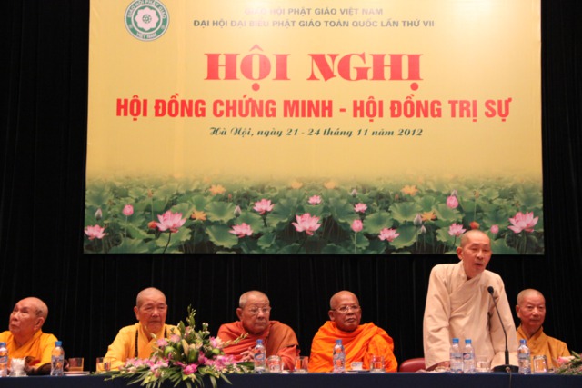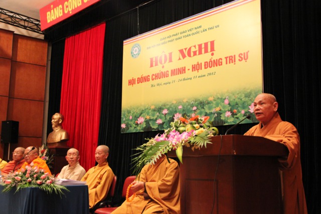 HT. Thích Thiện Nhơn thay mặt Ban Thường trực Hội đồng Trị sự báo cáo về kế hoạch tổ chức Đại hội VII, nội dung và công tác chuẩn bị Đại hội, đặc biệt là Hòa thượng đã trình bày danh sách dự thảo dự kiến nhân sự HĐCM, HĐTS.