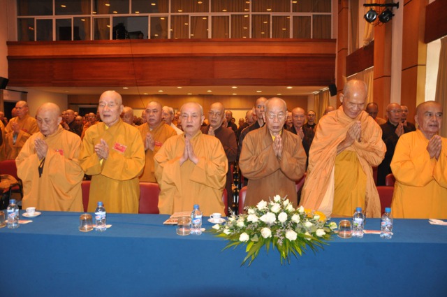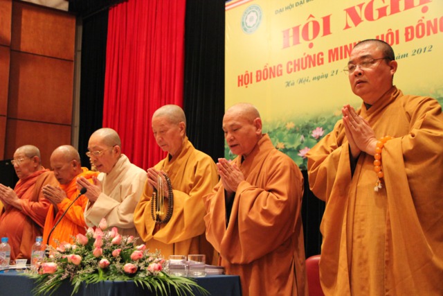 Sau nghi lễ niệm Phật cầu gia hộ, Chư tôn đức Ban tổ chức Đại hội Duyệt lại các mặt tổ chức Đại hội.