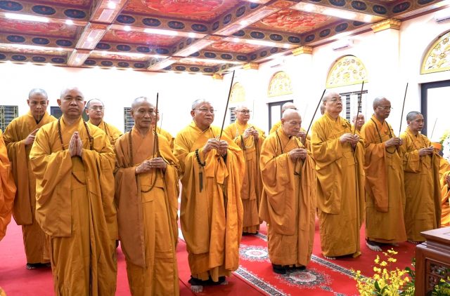 Trước di ảnh của cố Phó Pháp chủ, chư Tôn đức đã thành tâm thắp hương cầu nguyện, dành phút tưởng niệm và chia buồn sâu sắc cùng môn đồ pháp quyến.