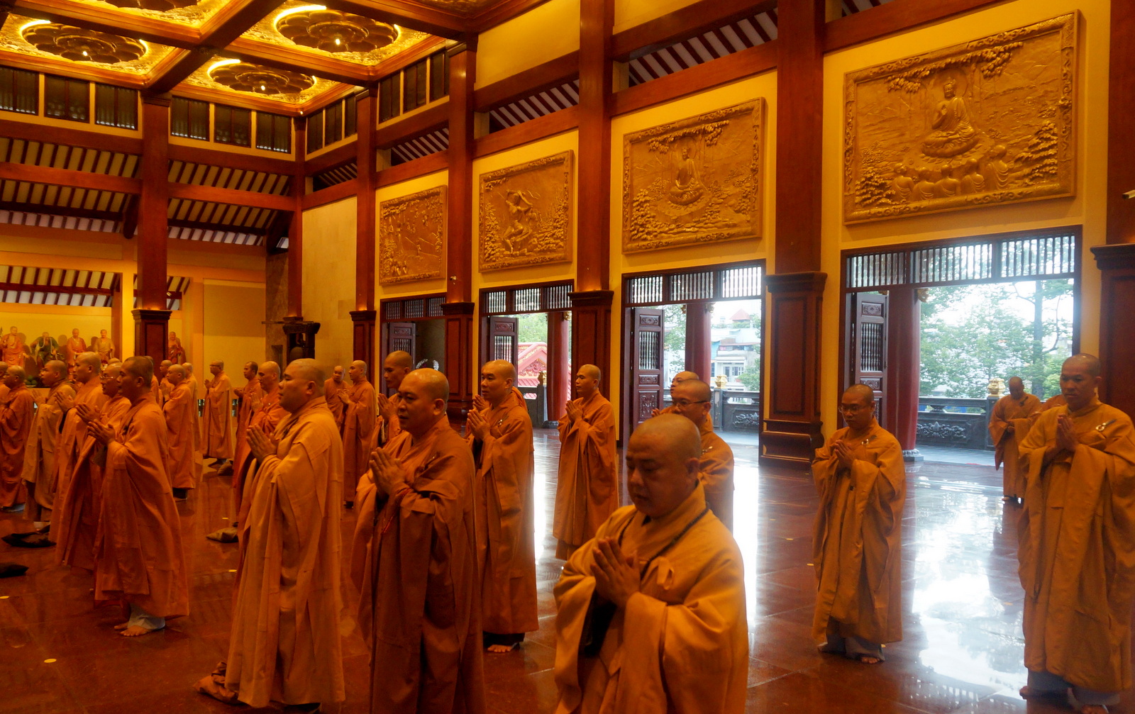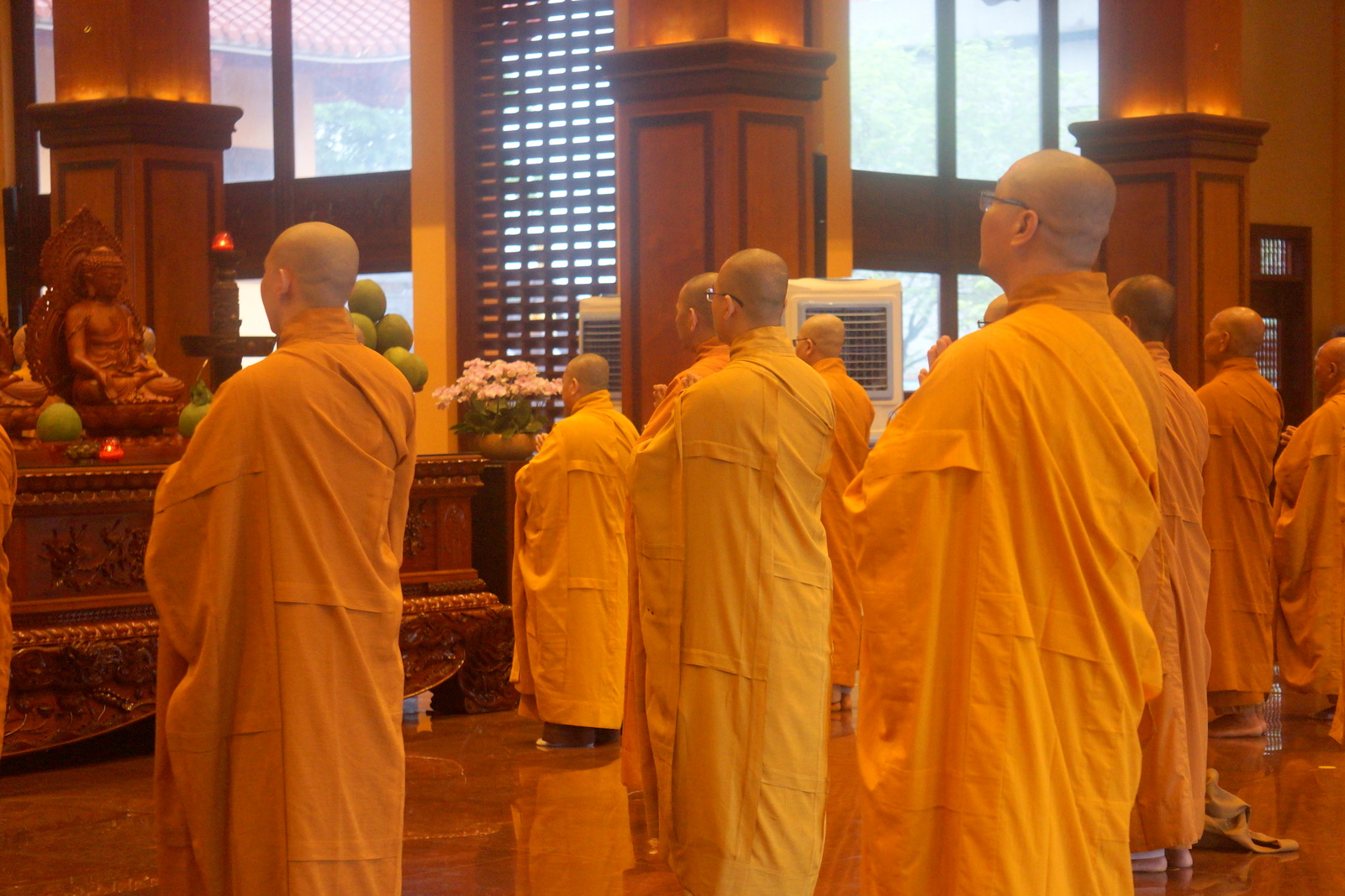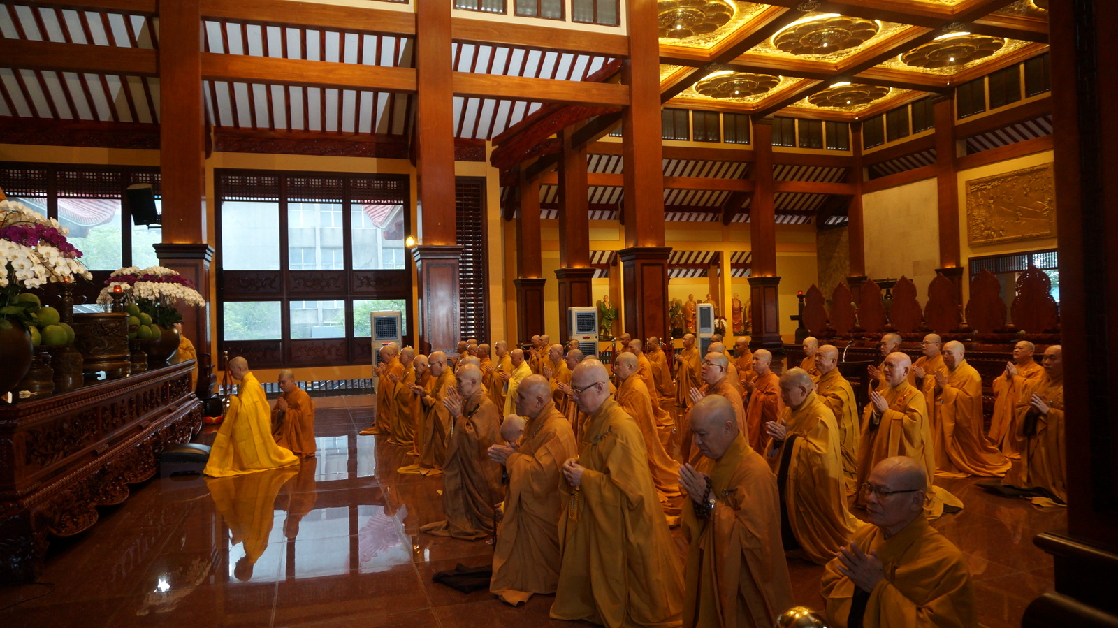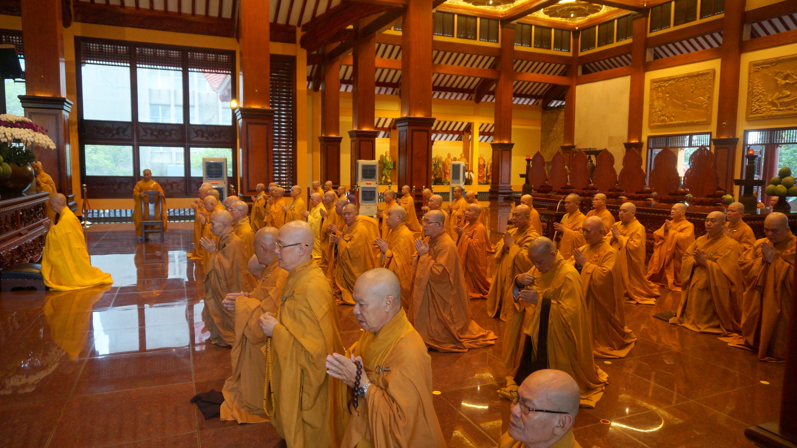 Sáng nay 01/07/2019 (nhằm ngày 29/05/Kỷ Hợi), Chư tôn đức Thường trực BTS GHPGVN TP.Hồ Chí Minh, chư tôn đức Thường trực BTS 24 quận/huyện, các ban chuyên ngành trực thuộc GHPGVN TP.Hồ Chí Minh tập trung bố tát, tụng giới tại Việt Nam Quốc Tự (Q.10).