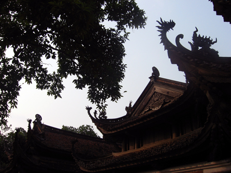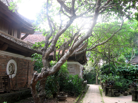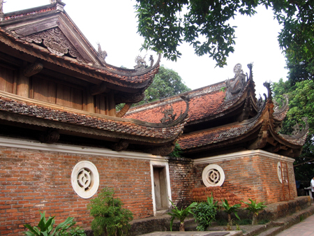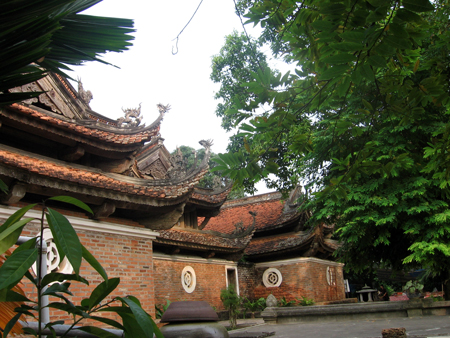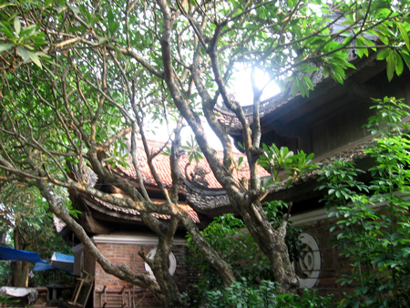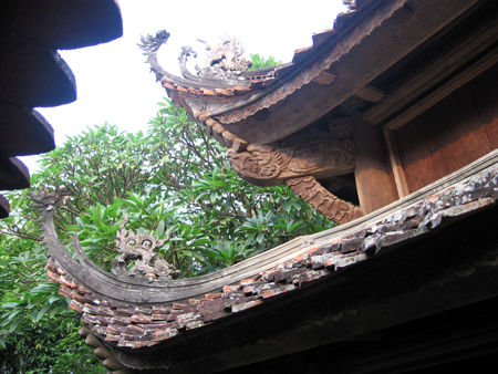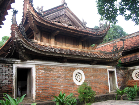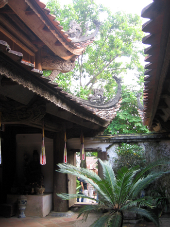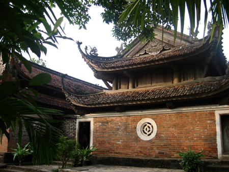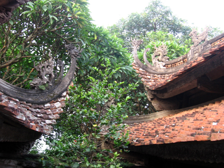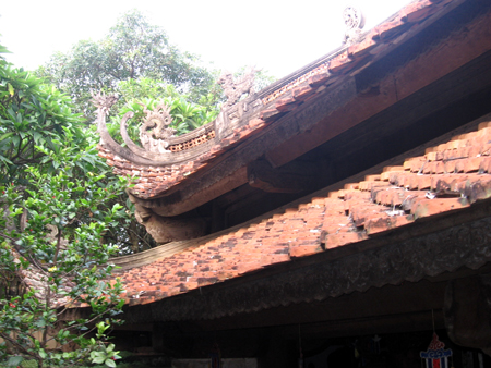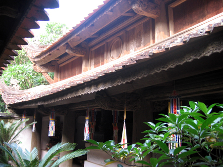 Bên trong chùa , có kiến trúc , bố cục đơn giản mà bao quát , chỗ nào cũng có đường soi cạnh trau chuốt và trang trí hình hoa lá rồng phượng rất mỹ thuật và hài hòa. Ðặc biệt trên mái nhà rui mè đều có mộng ô vuông , lót ngói xanh đỏ vàng. Trang trí theo kiểu áo cà sa nhà Phật . Các chân cột đều đứng trên tảng đá xanh đục hoa sen nở rộ , mà chân cột tưởng như những đài sen . Có những ô cửa sổ tròn trang trí theo kiểu “bán âm , bán dương” hay cửa “sắc sắc không không” thuộc triết lý nhà Phật . Phía trong các vì chùa dựng theo lối chồng giừơng thống nhất , chồng cột có xà đỡ . Nghệ thuật trang trí theo kiểu rồng phượng hoa lá ở trên các vì xà , vân nong … với kỹ thuật chạm bẹt (chạm nông) . Ngôi chùa thứ nhất và ngôi chùa thứ ba được chạm đục hoa lá rất mềm mại và hài hòa với cảnh vật cây núi bên ngoài . Ngôi chùa giữa thì được nghệ nhân đục chạm tứ linh . Các đầu rồng được thể hiện sống động như đang vờn mây cuốn gió. Các con phượng, con lân cũng như đang đùa giỡn với thời gian.
