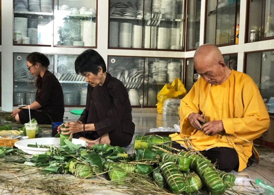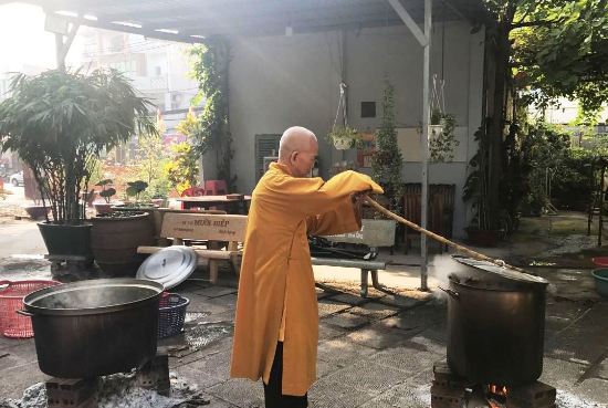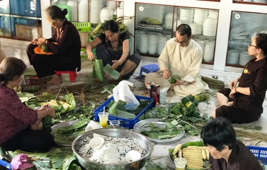 Theo thông lệ hàng năm, sau khi kết thúc lớp Dịch thuật Hán nôm, công việc chuẩn bị tết cổ truyền tại Tu Viện Huệ Quang lại bắt đầu. Việc làm vệ sinh tổng thể từ Chính điện, nhà tổ, nhà ăn, Phòng Dịch Thuật, Thư Viện, Lớp Học, Văn Phòng Học vu… tương đối hoàn tất, thầy trò lại bắt đầu công việc nứt bánh tét.