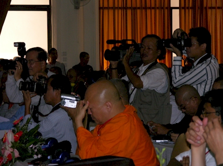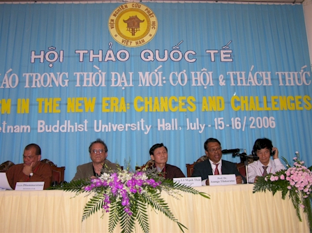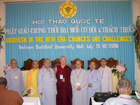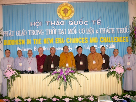 GS.TS. Lê Mạnh Thát – Phó Viện trưởng Viện Nghiên cứu Phật học Việt Nam chụp ảnh lưu niệm với Đoàn đại biểu Phật giáo Thái Lan tham dự Hội thảo