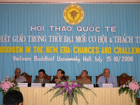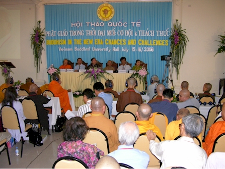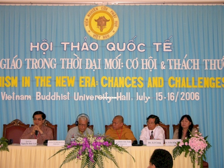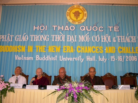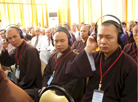 Đại đức Thích Thanh Phong, trụ trì chùa Vĩnh Nghiêm cùng Phật tử tỉnh miền núi phía Bắc Tuyên Quang đến chúc mừng Hội thảo