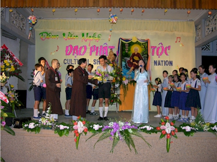 GS. Lê Mạnh Thát tặng hoa đêm Văn nghệ