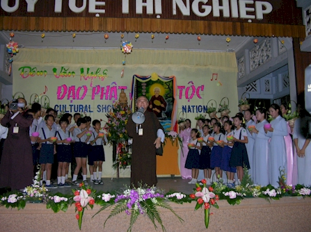TT. Thích Đạt Đạo, Chánh Văn phòng Học viện Phật giáo tại TP. Hồ Chí Minh điều khiển đêm văn nghệ