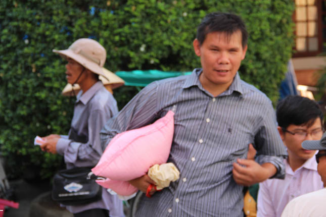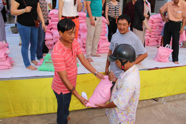 Đồng hành cùng chương trình của chùa Phổ Hiền và tham gia trao tặng gạo cho bà con trong buổi sáng hôm nay còn có mặt Huấn luyện viên Lê Huỳnh Đức cùng các thành viên trong ban huấn luyện câu lạc bộ bóng đá SHB Đà Nẵng.