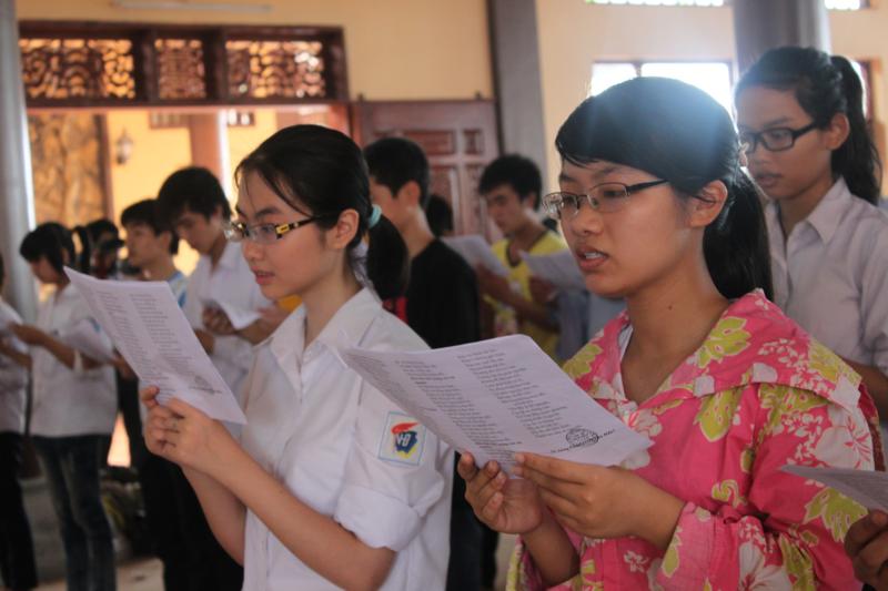 Tại buổi lễ, các em học sinh được sự tư vấn về kiến thức của các thầy cô giáo, và được quý Thầy hướng dẫn thiền tập để tạo sự tự tin, bình tĩnh khi thi.