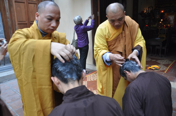 Đặc biệt trong dịp này, Thượng tọa cùng chư tăng đã làm lễ thế phát xuất gia cho bốn thiện nam tử phát tâm xuất gia tu học.