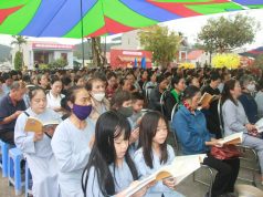 Sau một thời khoá tụng kinh, các Chư tăng đã khai quang, điểm nhãn cho tượng trong tiếng kinh cầu nguyện thành kính, nghiêm trang của hàng trăm phật tử khắp nơi xa gần.