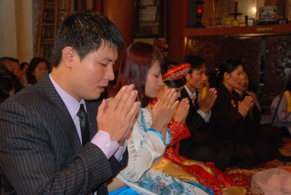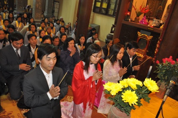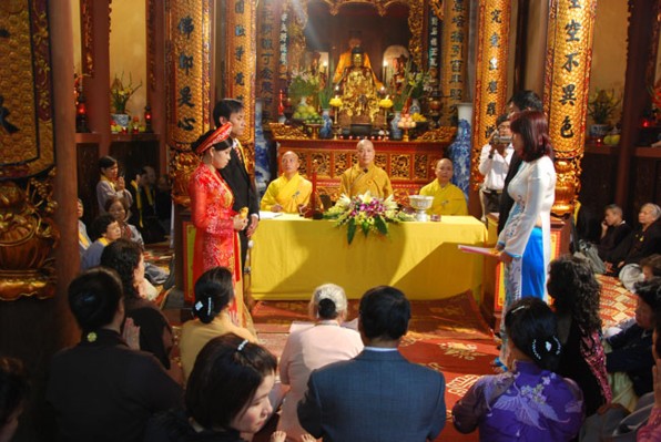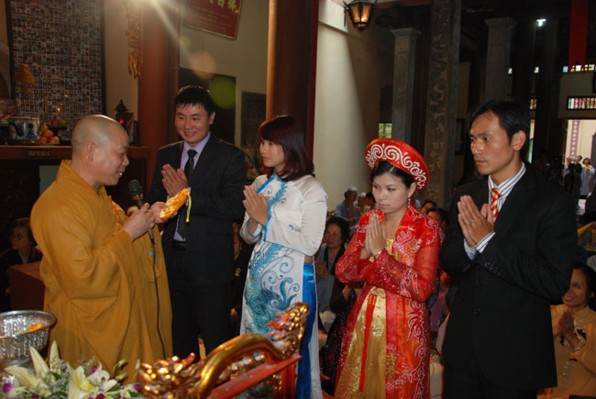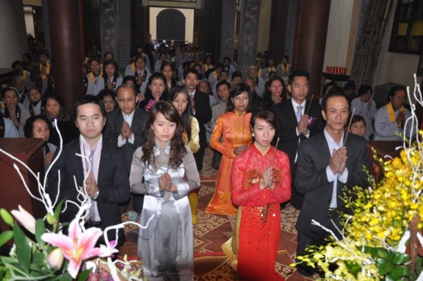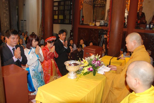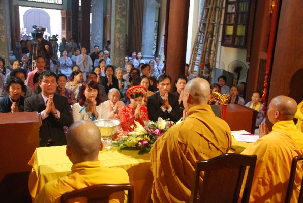Trước xu hướng ấy, chùa Lý Triều Quốc Sư, theo chúng tôi được biết, chỉ mới trong vòng tháng 12.2010 vừa qua mà đã có 7 cặp Nam nữ đến chùa xin chư tôn đức tổ chức lễ chúc phúc và quy y cho họ.