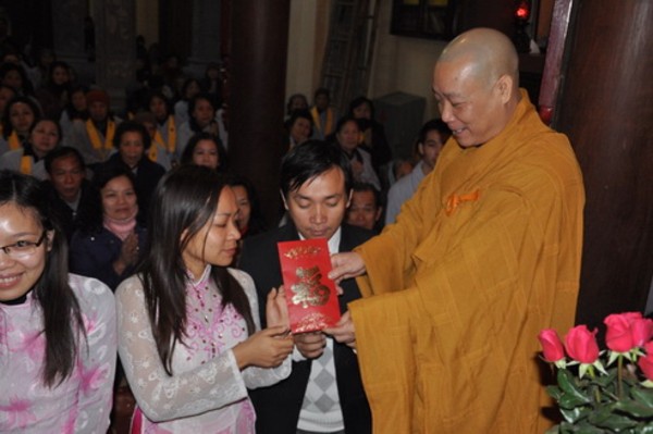 Tại chùa Lý Triều Quốc Sư, dưới sự chủ trì của TT. Thích Bảo Nghiêm – Phó Chủ tịch kiêm Trưởng Ban Hoằng pháp TW, Trưởng Ban Trị sự THPG Hà Nội, Trụ trì chùa Lý Triều Quốc Sư, các cặp Nam Nữ đã được nghe TT thuyết giảng về đạo đức làm người trong đời sống hôn nhân theo tinh thần Phật dạy trong kinh Thiện sinh: