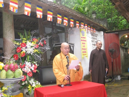 8h sáng, buổi lễ chính thức bắt đầu. Đại Đức Thích Giải Hiền tuyên đọc thông điệp Phật Đản của Đức Pháp chủ Giáo hội Phật giáo Việt Nam gửi tới toàn thể các vị Đại biểu và đồng bào Phật tử có mặt tại chùa Thông. Tiếp đến, Cư sỹ Nguyễn Văn Dũng (Pháp danh Nguyên Sĩ) – Đại diện Ban tổ chức tuyên đọc diễn văn Phật Đản của Hoà Thượng Chủ Tịch. Sau đó là phần phát biểu của Ông Lê Văn Bắc – Chủ tịch UBND xã Tân Xã, đại diện chính quyền địa phương sở tại.