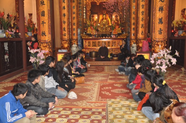 Tại buổi sinh hoạt đầu năm mới này, Thượng tọa cũng cho các em Thanh thiếu niên chùa Kim Long ở Thạch Thất, Hà Nội đến giao lưu học hỏi và chia sẻ những kinh nghiệm sống cùng Thanh thiếu niên chùa Lý Triều Quốc Sư.