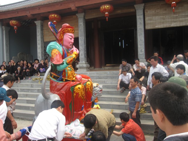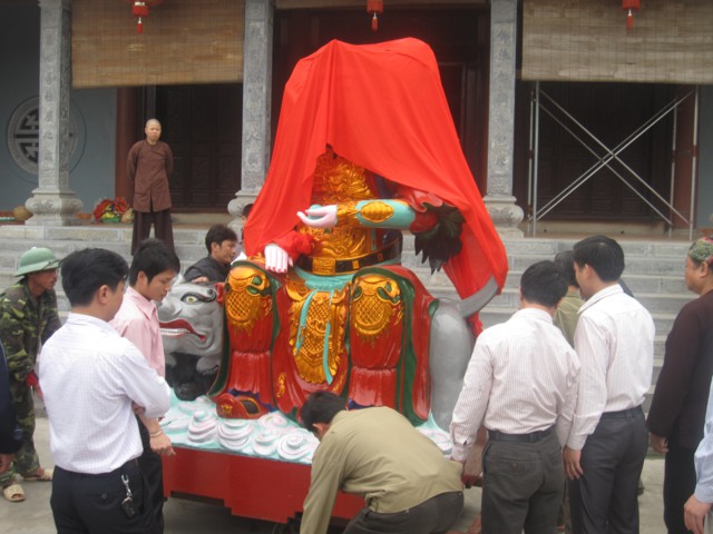 Việc chuyển tượng lên chùa được bắt đầu từ sáng sớm. Nhiều già làng tín lão đã có mặt tại chùa để cầu kinh niệm phật cho hai pho hộ pháp. Hơn 8h thì hai pho tượng được lần lượt chuyển về chùa Hưng phúc. Pho tượng nặng, hơn ba chục người từ các cụ ông cho đến các bác, các chú và anh em thanh niên trai tráng trong làng cùng góp sức, góp trí, tập trung lại để đưa pho tượng vào đặt ngay ngăn trong chùa.