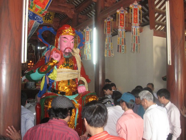 Nhưng đưa được các vị qua cánh cửa thì quả là một điều không hề đơn giản. Bởi pho tượng nặng và lớn so với chiều cao, chiều ngang của cửa. Sự phối hợp nhịp nhàng, tinh ý, các pho tượng lần lượt được đắt vào đúng vị trí. Những tiếng cười, tiếng hoan hô và cả giọt mồ hôi qua từng công đoạn đã làm ai nấy như tăng thêm sức mạnh, sự hiệp đồng, đoàn kết của người dân quê hương.