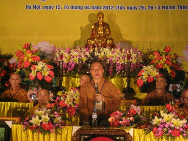 Đại chúng được nghe lời phát biểu chào mừng của lãnh đạo huyện Đông Anh và Đạo từ của đại diện chư Tôn đức lãnh đạo PGHN.