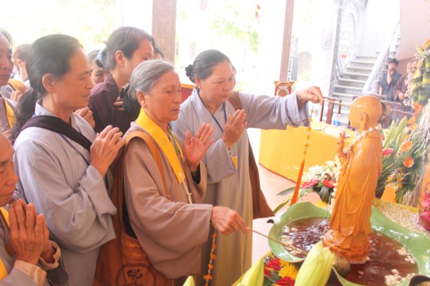 Đại đức Thích Viên Giác đọc diễn văn Phật đản của Hoà thượng Chủ tịch Hội đồng Trị sự GHPG Việt Nam. Toàn thể Tăng ni, Phật tử trang nghiêm cử hành khóa lễ tắm Phật theo nghi lễ Phật giáo bắc truyền và tụng kinh lịch sử đức Phật Thích Ca Mâu Ni.