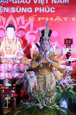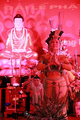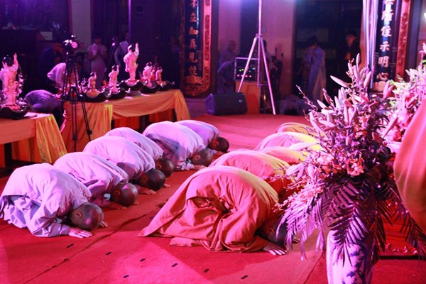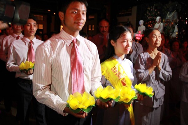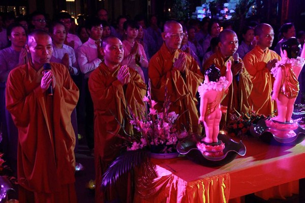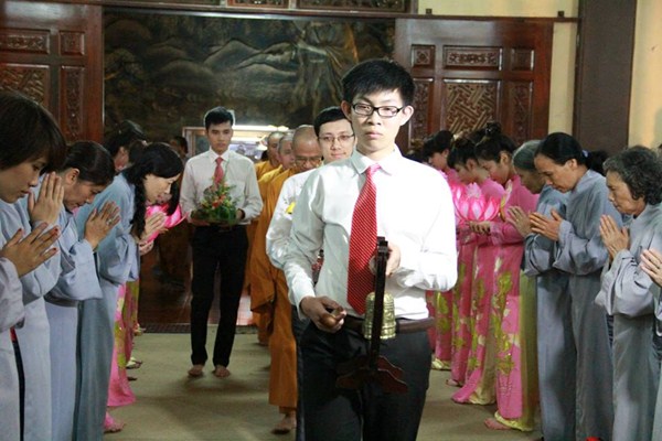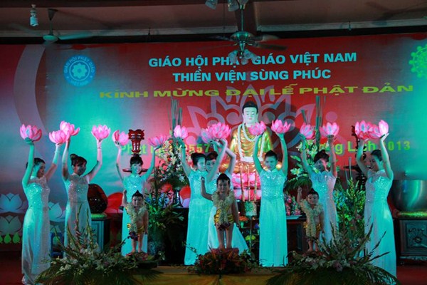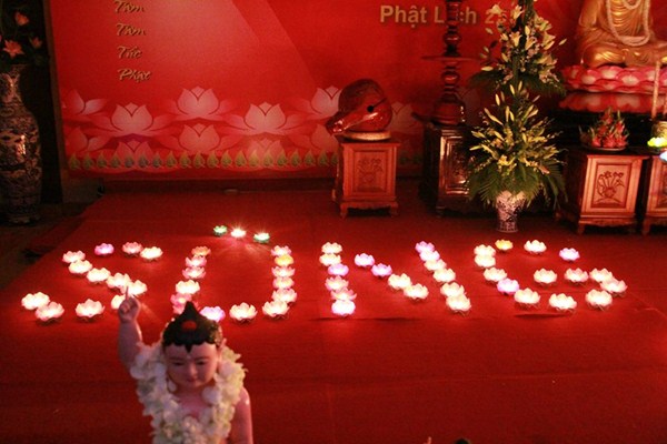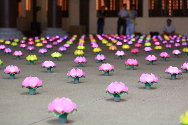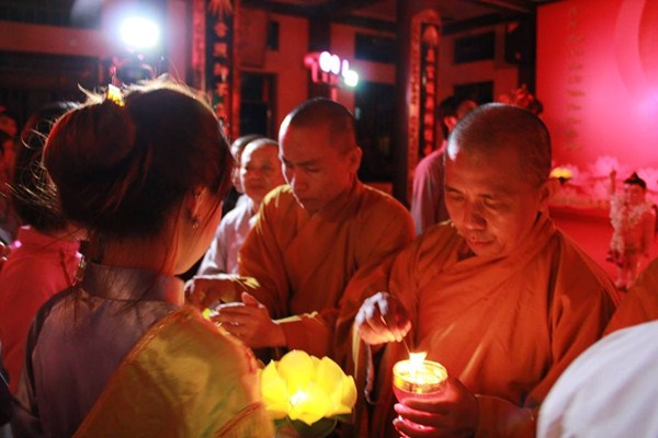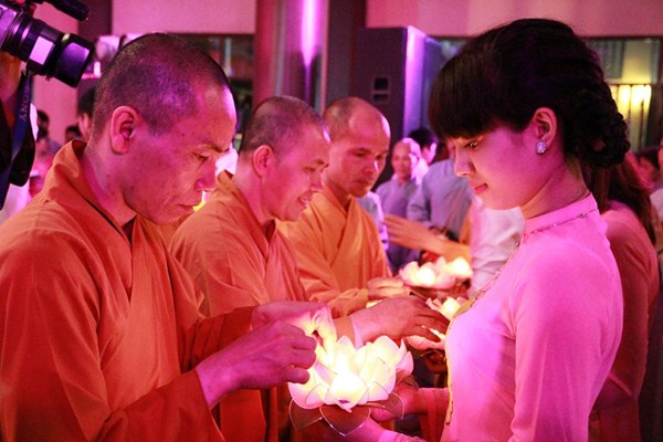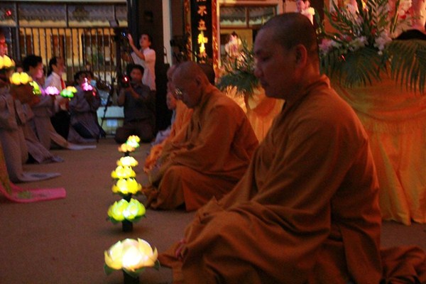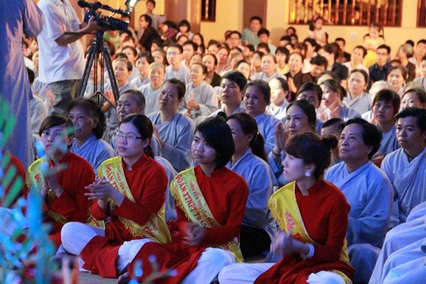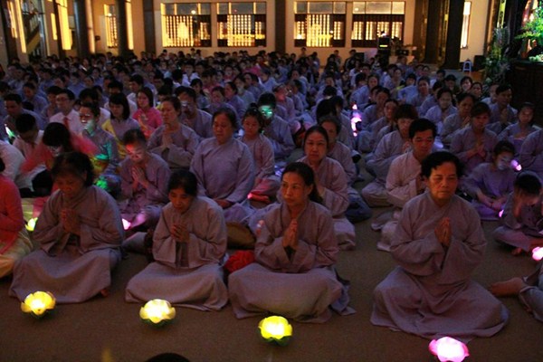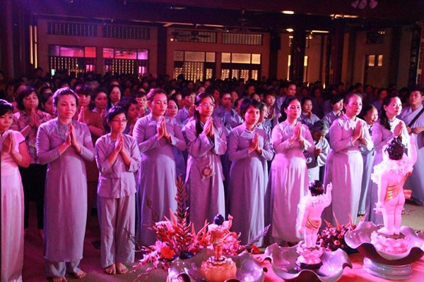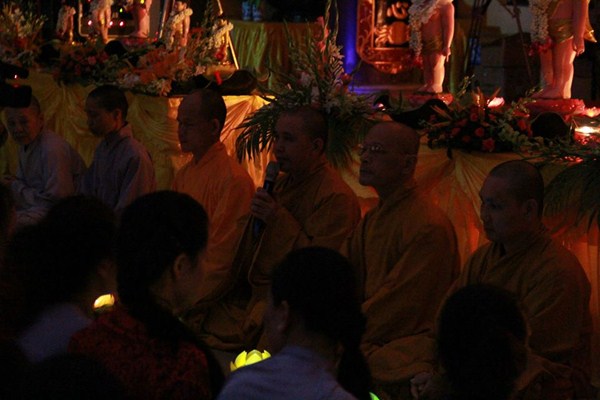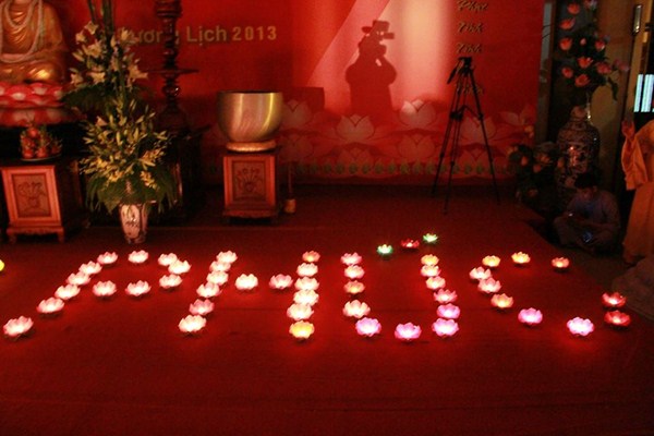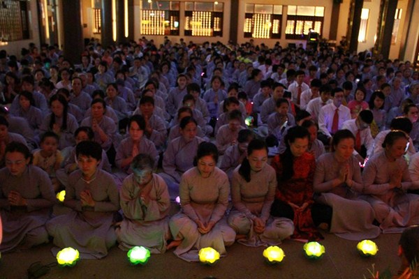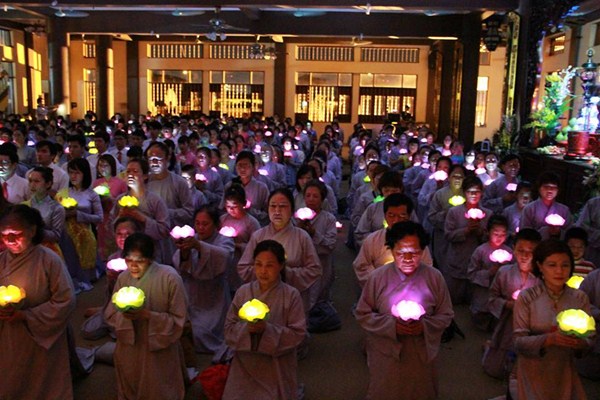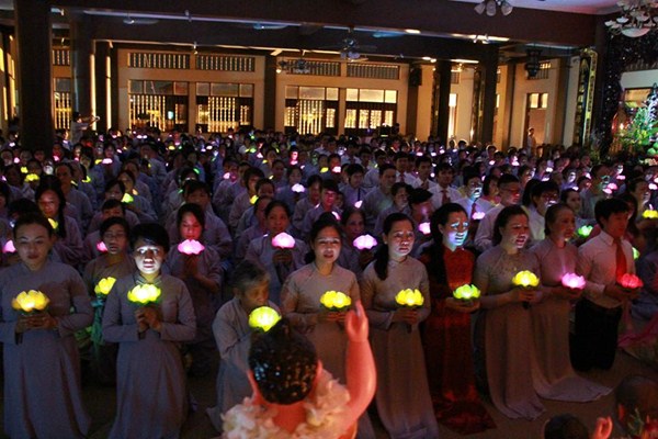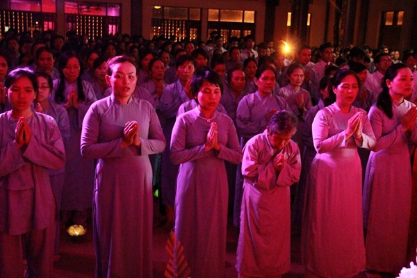 Sau phần văn nghệ, toàn thể đạo tràng cùng lắng lòng thanh tịnh trong buổi lễ truyền đăng và dâng lời Phát nguyện nhân mùa Phật đản.