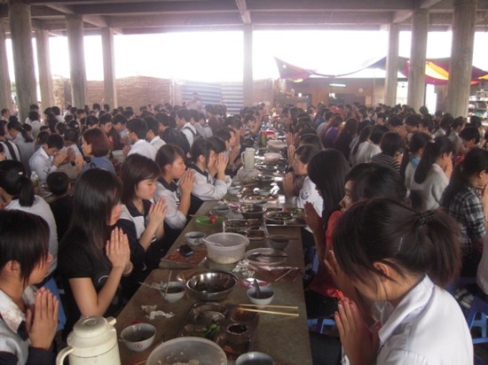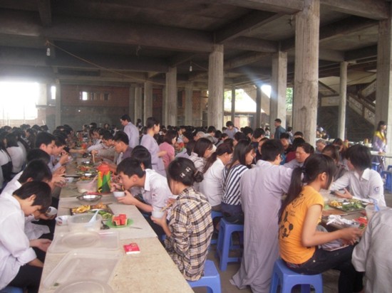 Các em học sinh dùng cơm chay tại chùa