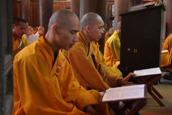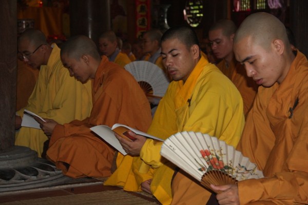 Chư Tăng ni được chia thành hai chúng để thay nhau lên chùa tụng kinh.