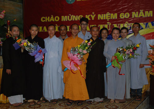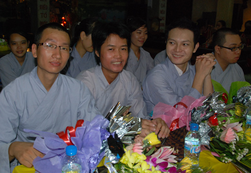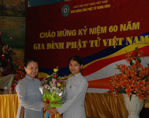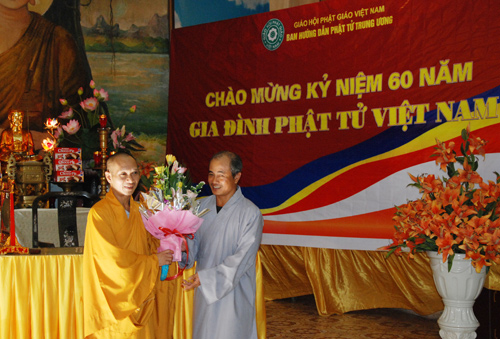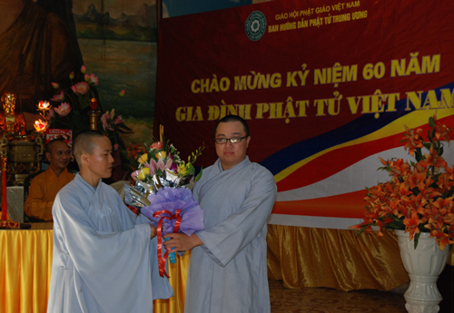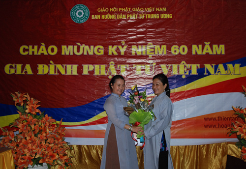 Thay mặt các Đạo tràng, CLB thanh niên Phật tử, đại diện Gia đình Phật tử các tỉnh thành phía bắc tặng hoa chúc mừng Thượng toạ, Tăng ni, Phật tử Ban Hướng dẫn Phật tử TW.