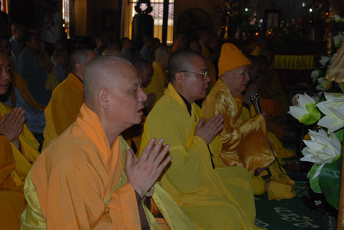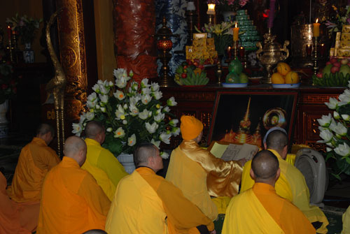 Sau khoá lễ tụng kinh niệm Phật, HT. Thích Thanh Tứ thuyết giảng ý nghĩa và bổn phận người tu sĩ trong việc an cư kiết hạ.
