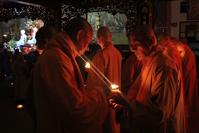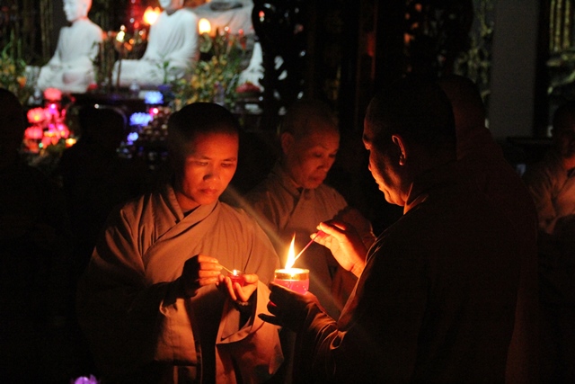 Rạng sáng ngày 9/10, toàn thể đại chúng nhiếp tâm thanh tịnh đón nhận ngọn đèn từ bi trí tuệ của mười phương Chư Phật của Quý Thầy truyền trao trong lễ truyền đăng sâu lắng. Toàn thể đại chúng đồng phát nguyện luôn tinh tiến hơn nữa trên con đường học Đạo giác ngộ giải thoát, nguyện noi theo gương hạnh của Chư vị Tổ Sư, nguyện cho ngọn đèn tâm luôn luôn sáng tỏ cho đến ngàn đời sau.