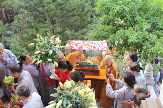 Một duyên lành cho Thiền Viện Trúc Lâm Sùng Phúc, vào lúc 7h30 sáng ngày Giỗ Tổ Bồ Đề Đạt Ma, toàn thể Chư Tôn Đức và Quý Phật Tử được cung đón tôn tượng Phật Ngọc của Đức Phật Bổn Sư Thích Ca Mâu Ni do Phật tử cúng dường. Ba hồi chuông trống bát nhã ngân vang, hoa tươi rải cúng dường trên từng bước chân an lạc cung đón tôn tượng Đức Phật về Chánh Điện.