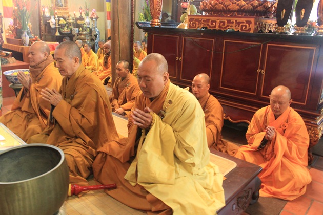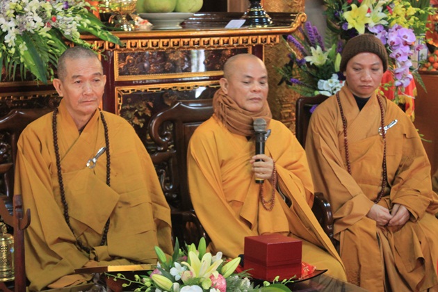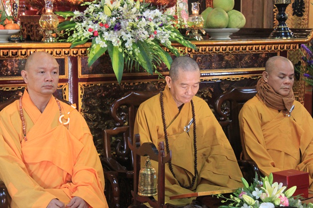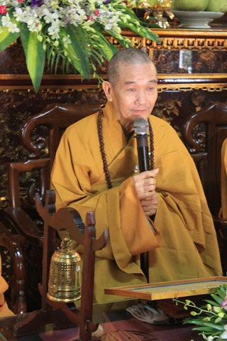 Trong buổi lễ, HT. Thích Thanh Hùng đã giảng giải về tam quy ngũ giới của người Phật tử tại gia và cách sống để có thể trở thành một con người tốt, có đạo đức.