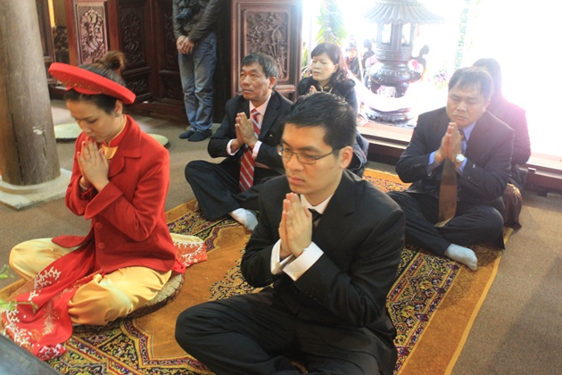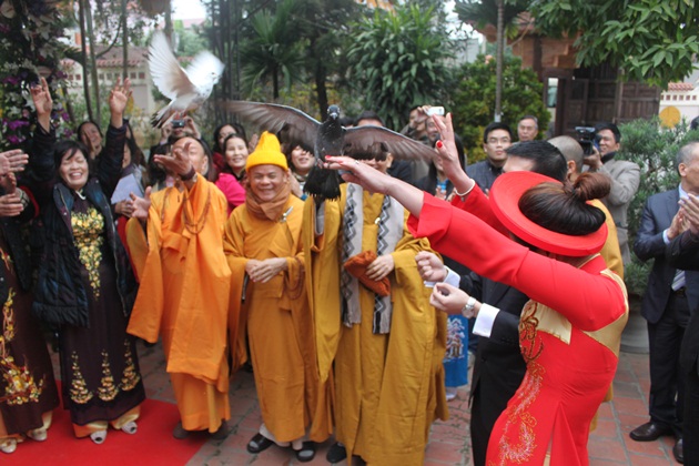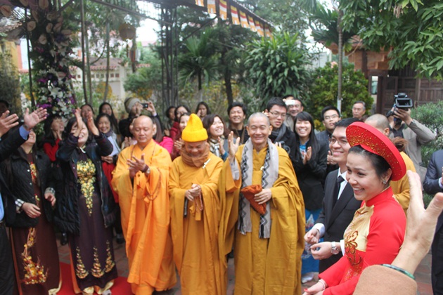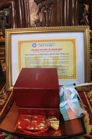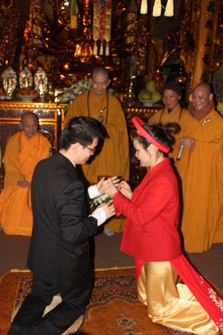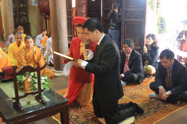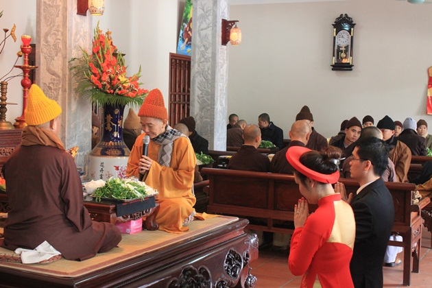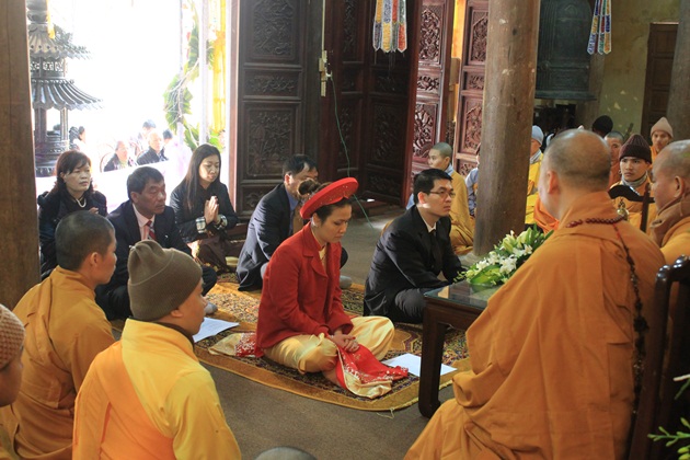 Sau những lời sách tấn đầy ý nghĩa, hai bạn trẻ đã phát nguyện trước Tam Bảo và hiện tiền chư Tôn đức Tăng Ni sẽ cố gắng tinh tấn thực hành những lời dạy đó để có thể sống đúng nghĩa là một người phật tử tại gia, một người con hiếu thảo, một người vợ – người chồng đúng mực.