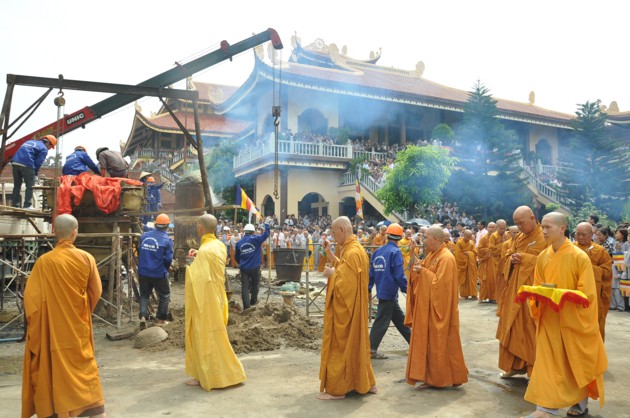 Hiện nay thiền tự Linh Sơn đang xây dựng mặt bằng ngổn ngang, thế đất chưa phát quang hết nên không thuận lợi cho công việc, Quý  Thầy đã quyết định đúc Đại Tượng Phật của thiền tự Linh Sơn tại thiền viện Sùng Phúc để gieo duyên lành cho nhân dân Phật tử có hữu duyên với thiền viện, dù gần dù xa… đi lại cho thuận tiện.