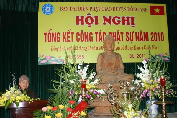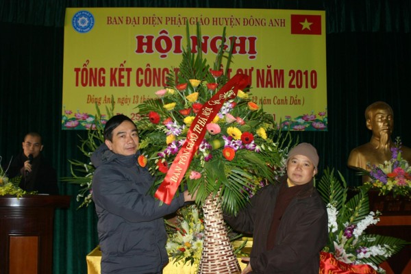 Lãnh đạo Huyện Đông Anh đánh giá rất cao vai trò của Ban đại diện Phật giáo huyện, đặc biệt là Chánh đại diện Phật giáo huyện Đông Anh, Ni sư Thích Minh Thịnh và chức mừng Ni sư vừa bảo vệ xuất sắc luận văn Thạc sỹ chuyên nghành Tôn Giáo học. Thay mặt lãnh đạo và Chính quyền Ông Lê Ngọc Quang đã trao bằng khen thưởng cho các Tăng – Ni có nhiều thành tích trong năm qua.