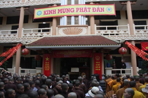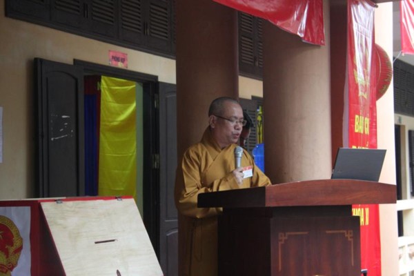 Tham gia buổi bầu cử có chư tôn đức HĐĐH, Văn phòng Học viện cùng 450 Tăng Ni sinh.