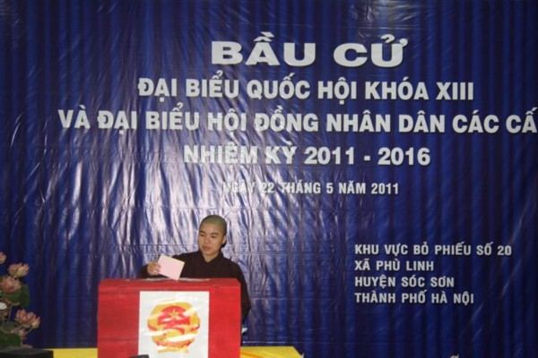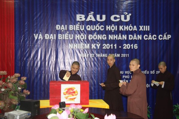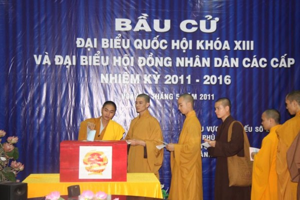 Đây là điểm bỏ phiếu hết sức đặc biệt duy nhất trong cả nước – Tham gia bầu cử ĐBQH và HĐND các cấp 100% là các tu sĩ Phật giáo.