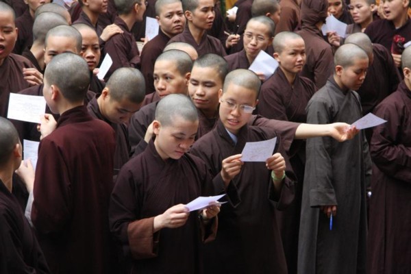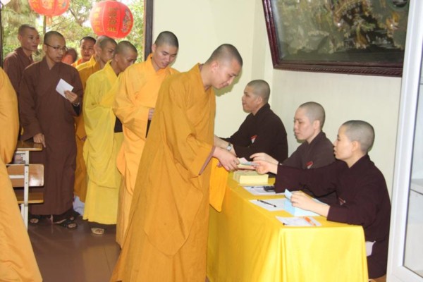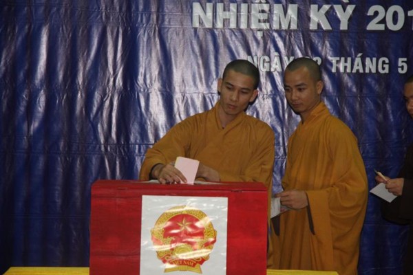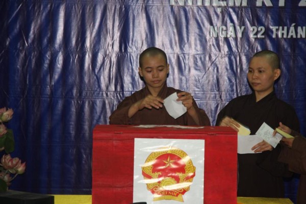 Sau đó Tăng Ni sinh đã tham gia bỏ phiếu. 100% lá phiếu tại HV đã được bỏ vào hòm phiếu.