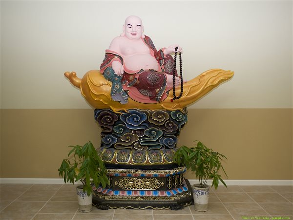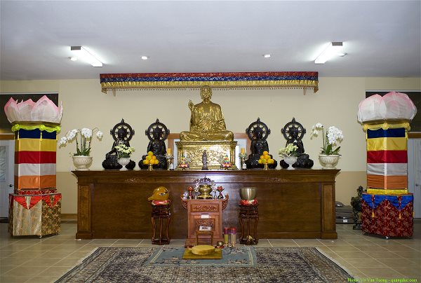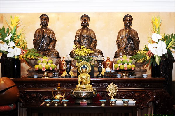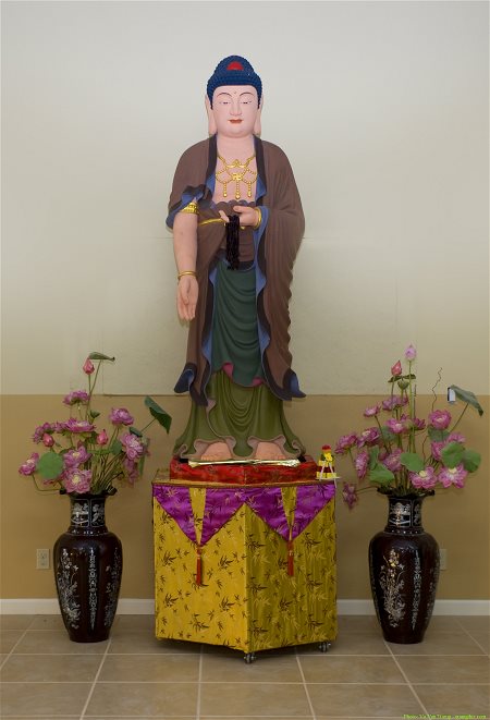 Điện Phật được bài trí trang nghiêm thờ tượng Tam Thế Phật, hai bên đặt tượng Tôn giả Ca Diếp và Tôn giả A Nan. Ở cơ sở 2, chùa thờ tượng Ngũ Phương Phật ở án giữa, phía trước thờ tượng đức Phật A Di Đà, Bồ tát Di Lặc, Bồ tát Văn Thù và Bồ tát Phổ Hiền. Tượng đức Phật Thích Ca Mâu Ni ở đây được đúc từ mẫu tượng chùa Từ Đàm, Huế.