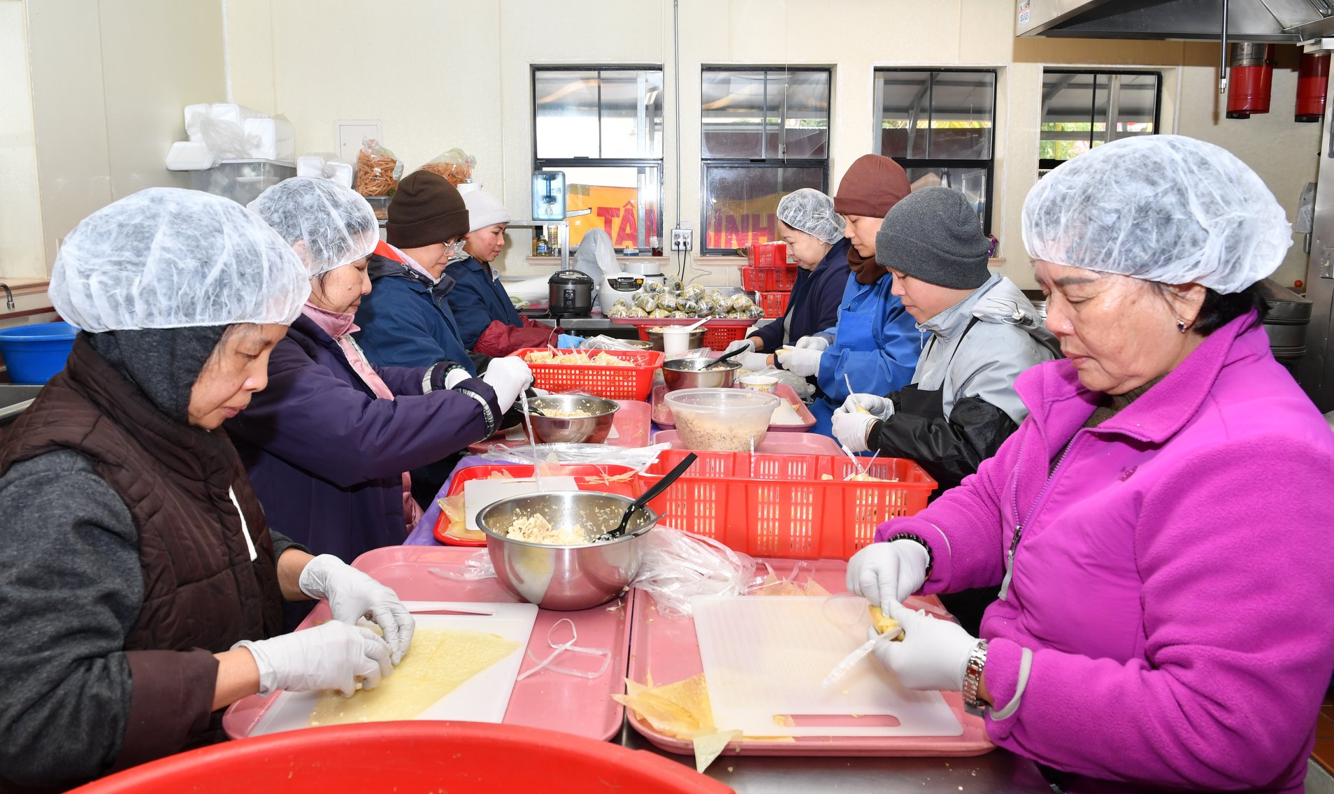 Chùa cũng chuẩn bị gian hàng Tết với nhiều chậu hoa lan, gói hơn 1.000 bánh chưng, hơn 1.000 bánh tét, nấu nhiều món chay để phục vụ Phật tử gần xa đến viếng chùa, lễ Phật, vui Xuân mới!