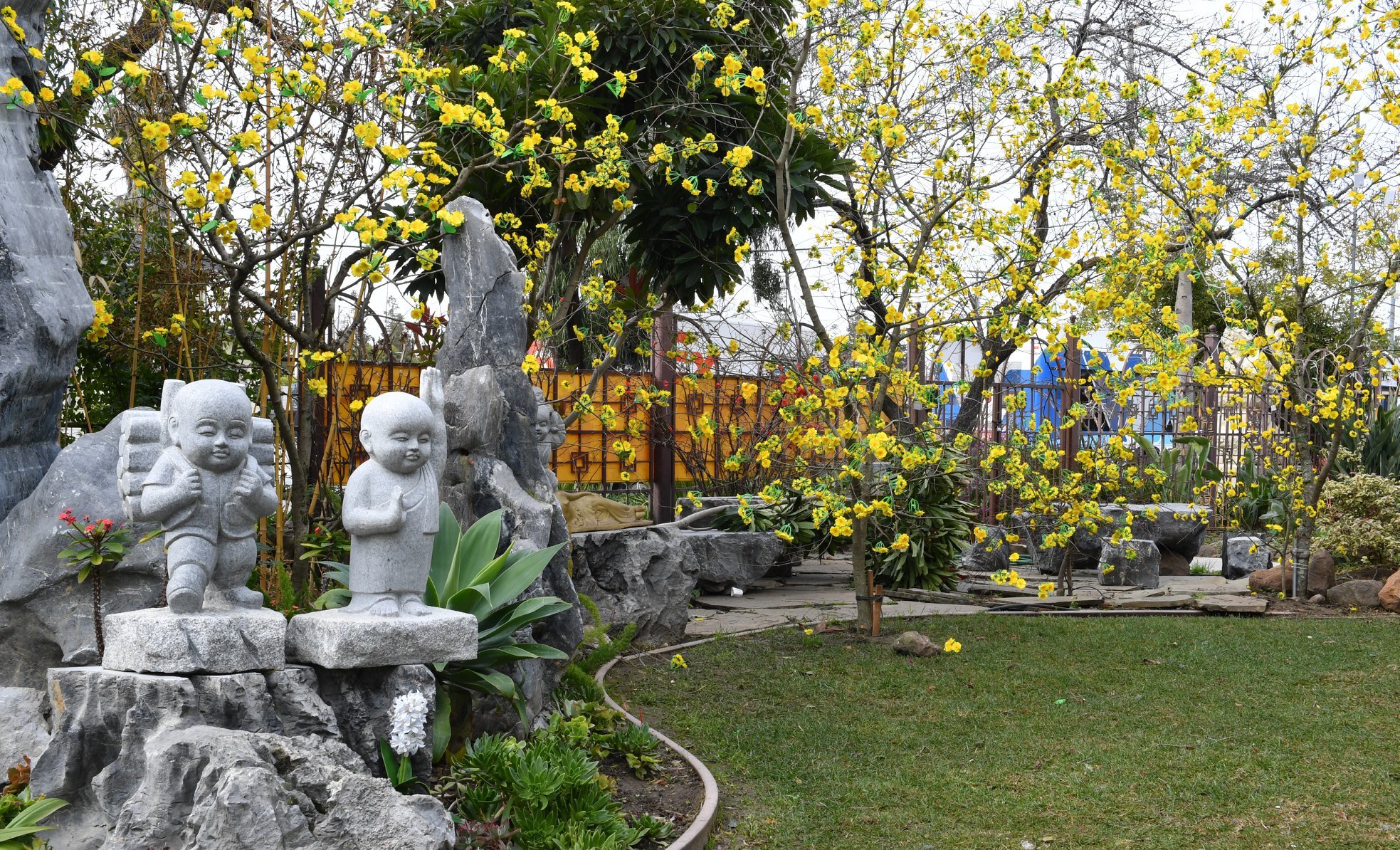 Từ ngày 15 đến ngày 28 tháng 12 năm Kỷ Hợi, chùa Đức Viên ở thành phố San Jose (Hoa Kỳ) đã trang trí vườn mai và các tiểu cảnh vui Xuân thật đẹp.