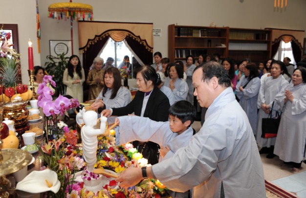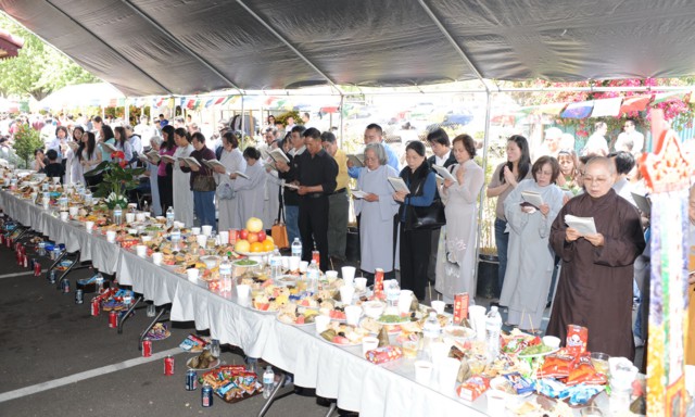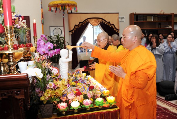 Tiếp theo là Nghi thức Tắm Phật, lễ cúng thí thực cô hồn và cơm trưa thân mật. Ngày lễ khép lại vào lúc 14g trong sự hoan hỷ, an lạc vô biên của hằng trăm Phật tử và Huynh trưởng, Đoàn sinh GĐPT tham dự.