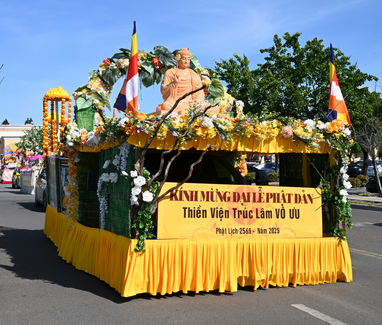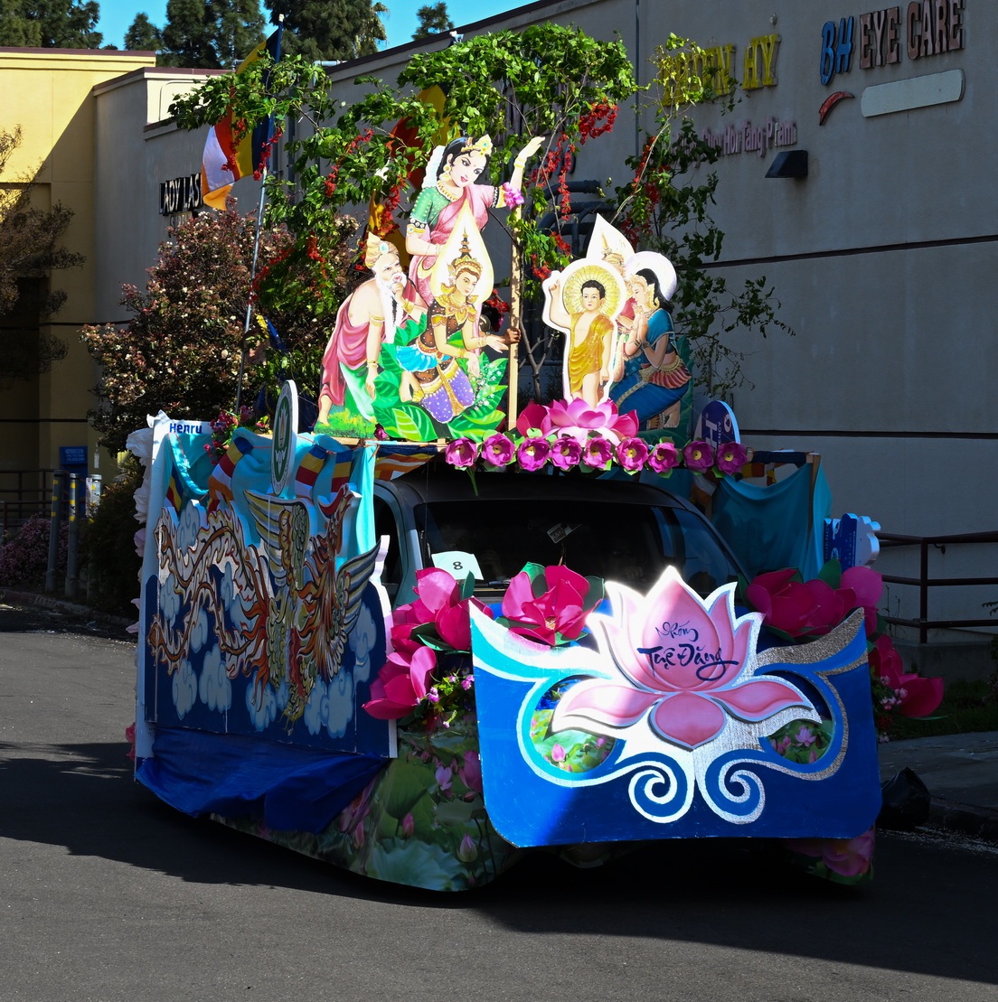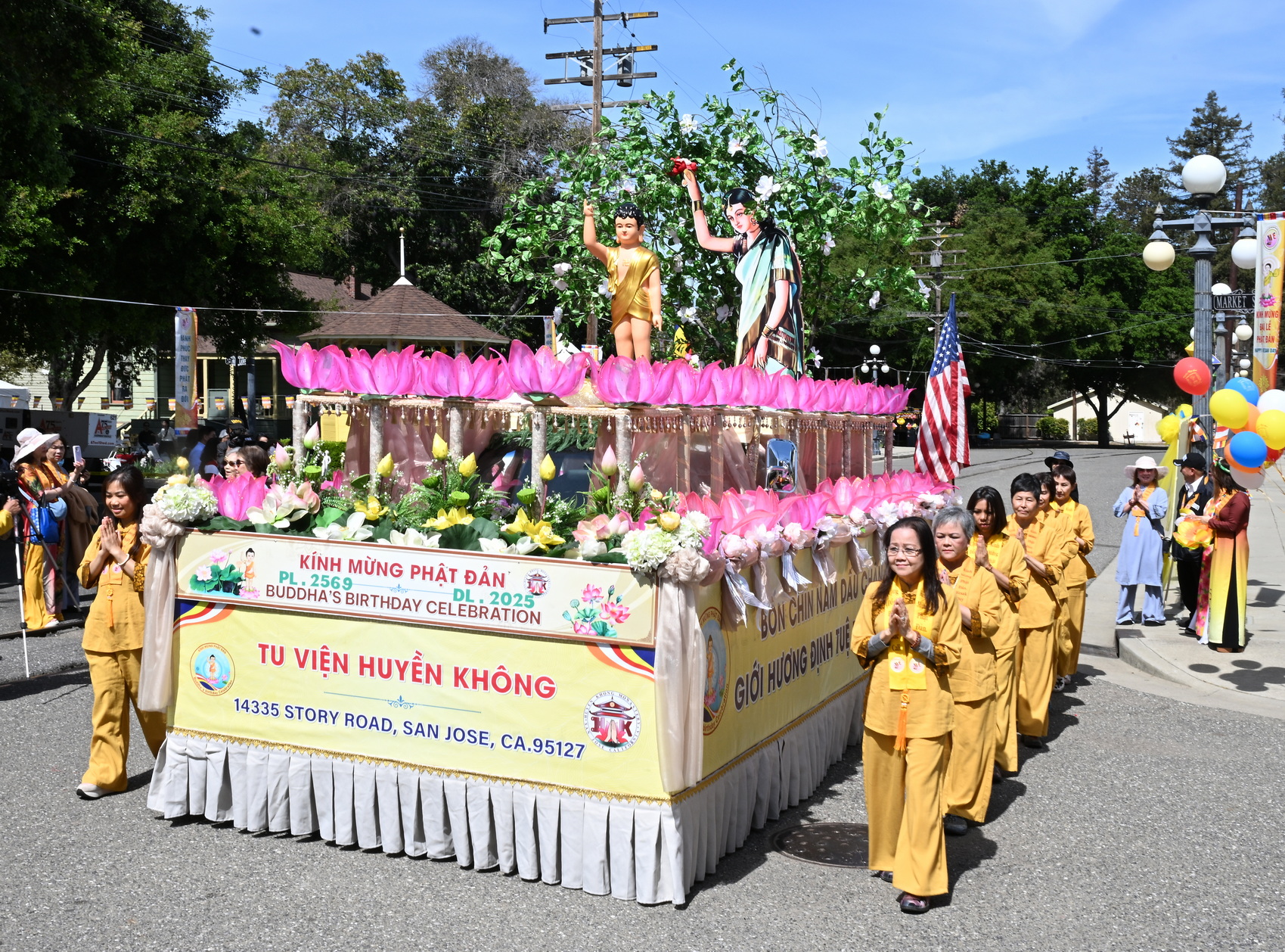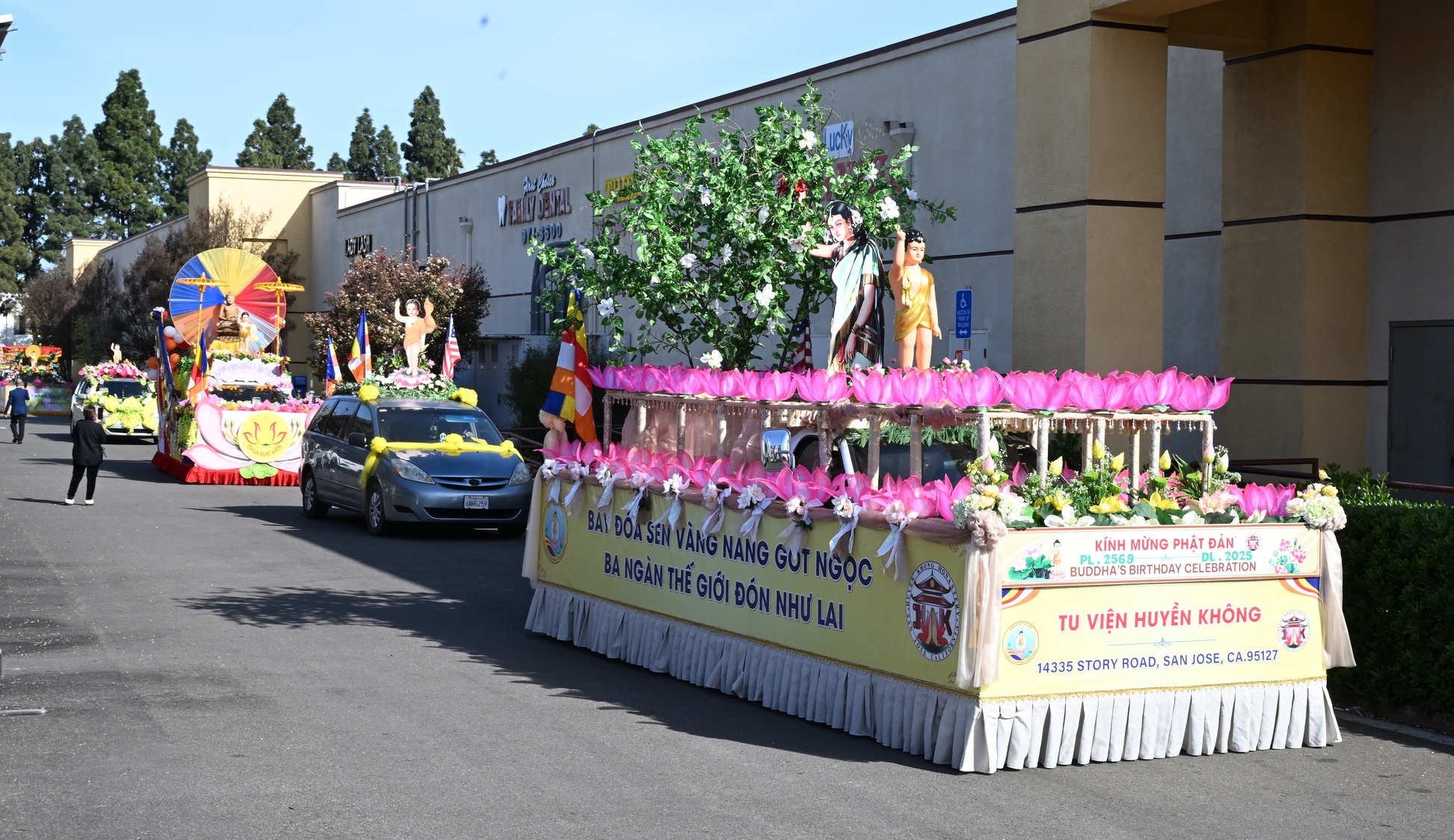Ngày 05/4/2025 là Diễn hành xe hoa tại Việt Nam Town, San Jose. 8 chiếc xe hoa: 1. Ban Tổ chức 2. Thiền viện Trúc Lâm Vô Ưu 3. Tu viện Huyền Không 4. Chùa Đức Viên 5. Chùa Thiên Trúc 6. Nhóm Hương Từ Bi 7. Gia đình Phật tử Bắc California 8. Nhóm Tuệ Đăng đã diễu hành trên đường phố.