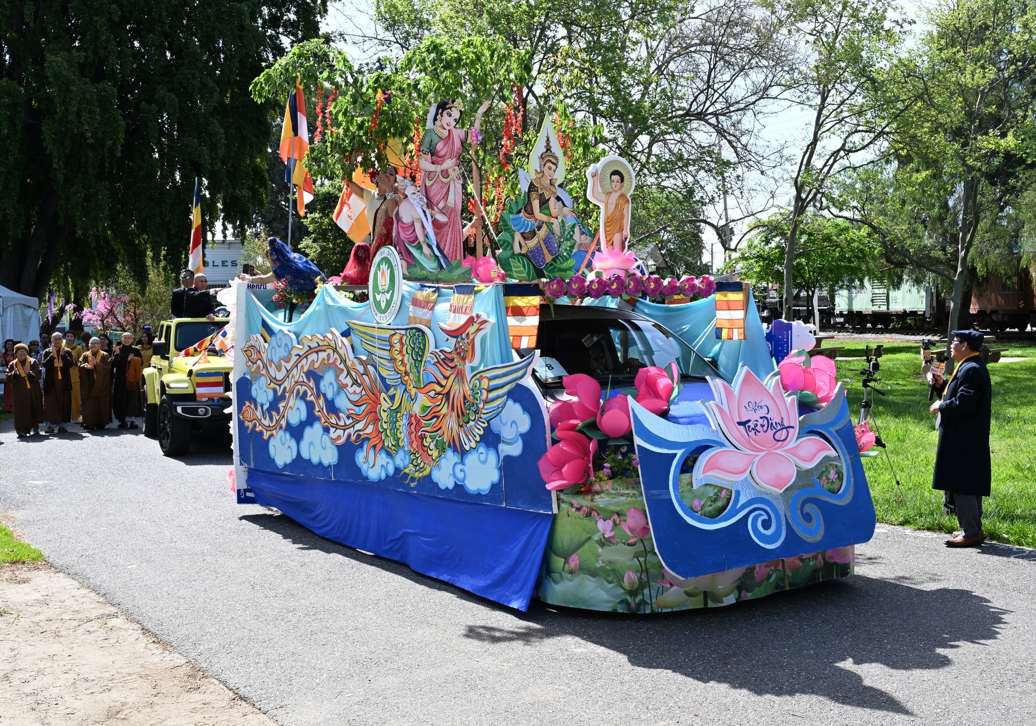 Sau đó là diễn hành xe hoa và múa lân tại History Park, San Jose. Ban tổ chức chấm điểm trang trí xe hoa. Giải nhất: Xe hoa chùa Đức Viên; giải nhì: Xe hoa thiền viện Trúc Lâm Vô Ưu, giải ba: Xe hoa tu viện Huyền Không; giải khuyến khích: Xe hoa chùa Thiên Trúc, Gia đình Phật tử Bắc California, nhóm Hương Từ Bi và nhóm Tuệ Đăng.