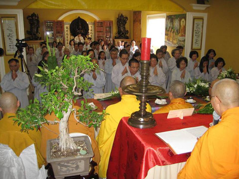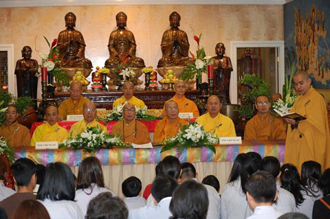 Buổi lễ được đặc dưới sự chứng minh của HT Thích Phước Thuận, HT Thích Tịnh Từ,  HT Thích Tịnh Diệu, HT Thích Minh Đạt, HT Thích Thiện Tấn từ Việt Nam, HT Thích Quảng Bình từ Đan Mạch, Chư Thượng tọa Thích Như Minh, Thích Tịnh Quang từ Pháp Quốc, cùng với hơn 30 chư tôn thượng tọa đại đức tại miền Bắc – Nam California – Hoa Kỳ. Chư vị giới sư cùng chư vị tôn chứng đã từ bi khai đàn truyền giới cho 30 phật tử thọ Tam Quy, 55 phật tử thọ Thập Thiện giới và 36 phật tử thọ Bồ Tát giới. Buổi lễ được truyền bằng hai ngôn ngữ Anh – Việt để các thiếu nhi được sanh ra và lớn lên hiểu pháp quy y mà lãnh thọ.