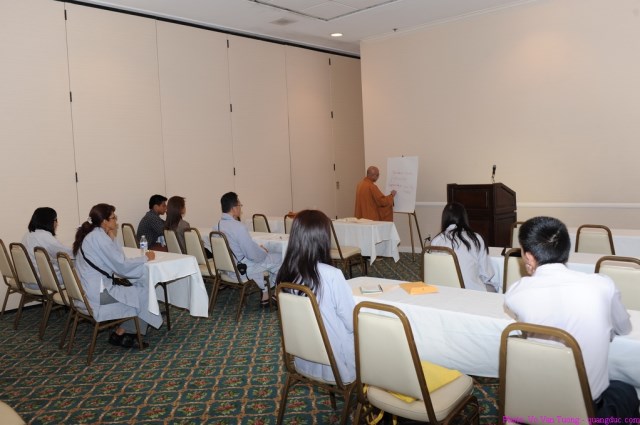 Sau nghi thức khai mạc và chụp ảnh kỷ niệm tập thể, chư Tăng, Ni và Phật tử bắt đầu chương trình học Phật pháp ở 6 lớp riêng. Đặc biệt có 2 lớp tiếng Anh cho người lớn và thiếu nhi. Lớp 1, Hòa thượng Thích Tín Nghĩa giảng bài “Vu Lan hiếu hạnh”; lớp 2, Đại đức Thích Thông Lý giảng bài “Tứ Vô Lượng Tâm”; lớp 3, Thượng tọa Thích Minh Tuệ giảng bài “Bồ Tát Hạnh”; lớp 4, Thượng tọa Thích Minh Hạnh giảng bài “The Buddhahood”; lớp 5, Đại đức Thích Đạo Quảng và Đại đức Thích Tâm Đạo giảng bài “Why Buddhism ?”; lớp 6 dành cho chư Tăng, Ni, Hòa thượng Thích Đức Thắng giảng bài “Tầm quan trọng của giới luật trong đời sống sinh hoạt chung của tu sĩ”.