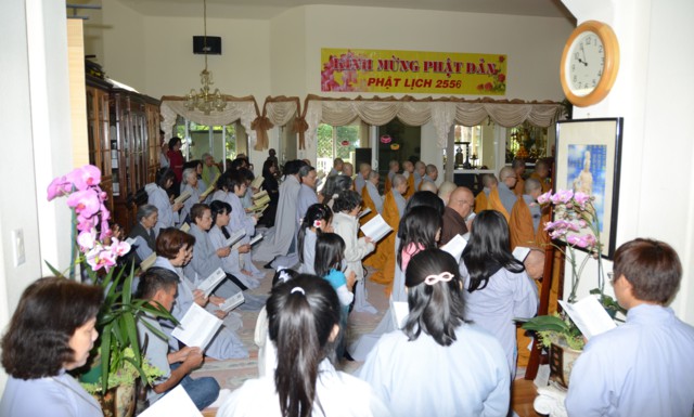 Lễ Phật Đản được chùa tổ chức vào lúc 15g30 ngày 29-4-2012. Hòa thượng Thích Tịnh Diệu, Phó Viện chủ Tu viện Kim Sơn (TP. Morgan Hill) cùng chư Tôn đức Tăng Ni nhiều tự viện ở California về dự Lễ. Sau Khóa Lễ mừng Phật Đản và dâng hoa cúng Phật, Hòa thượng Thích Tịnh Diệu ban đạo từ về ý nghĩa ngày Phật Đản, cùng chư Tôn đức Tăng Ni và Phật tử tham dự thực hiện nghi thức Tắm Phật, thọ trai và xem chương trình văn nghệ phong phú do nhóm văn nghệ của chùa thực hiện.