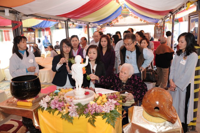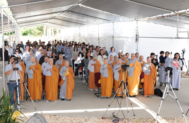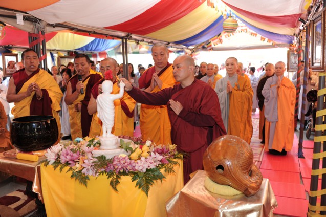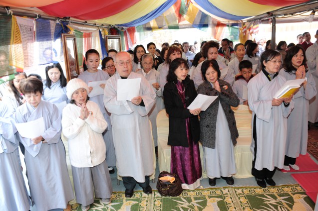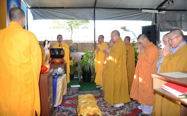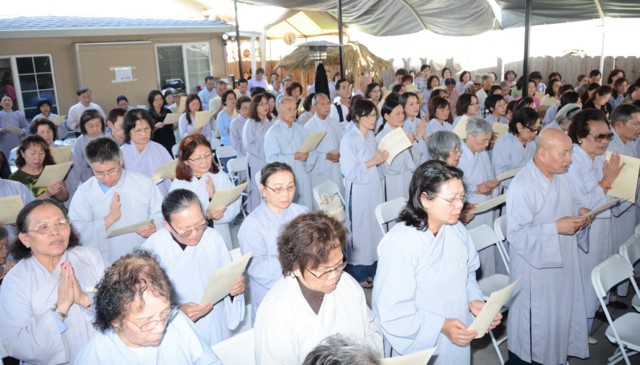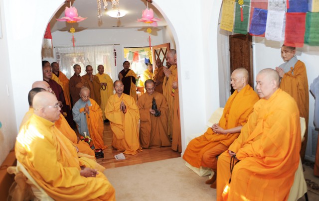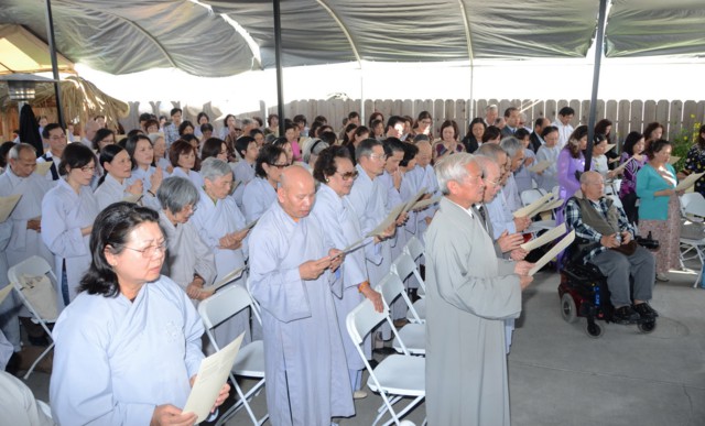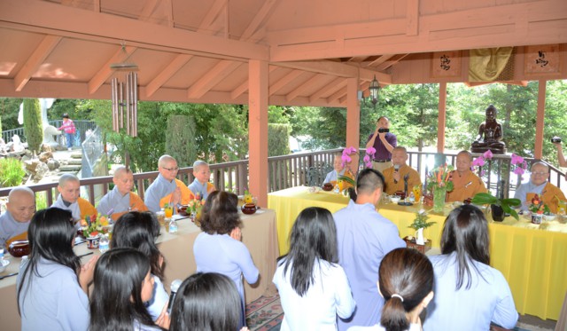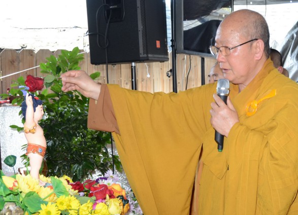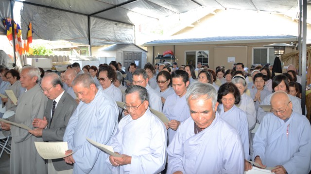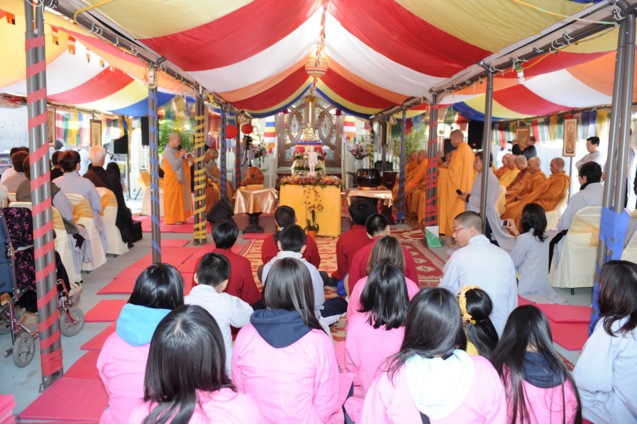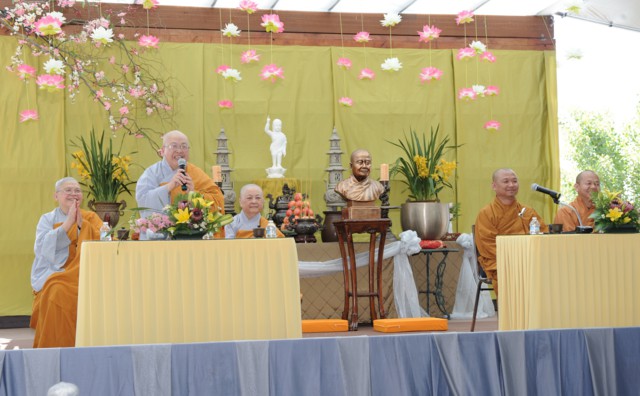 Lễ Phật Đản và Lễ khánh thành bảo tháp Hòa Bình được tịnh thất tổ chức rất sớm, lúc 09g30 ngày 08-4-2012. Chư Tôn đức Tăng Ni quang lâm khá đông, đến từ nhiều tự viện ở nhiều tiểu bang cùa Hoa Kỳ và nhiều nước trên thế giới. Sau phần dâng hoa cúng Phật, Hòa thượng Thích Như Điển (Viện chủ chùa Viên Giác, Đức Quốc) ban đạo từ về ý nghĩa ngày Phật Đản, cùng chư Tôn đức Tăng Ni và Phật tử tham dự cử hành Khóa Lễ mừng Phật Đản, thực hiện nghi thức Tắm Phật, nghi lễ khánh thành bảo tháp Hòa Bình và thọ trai.