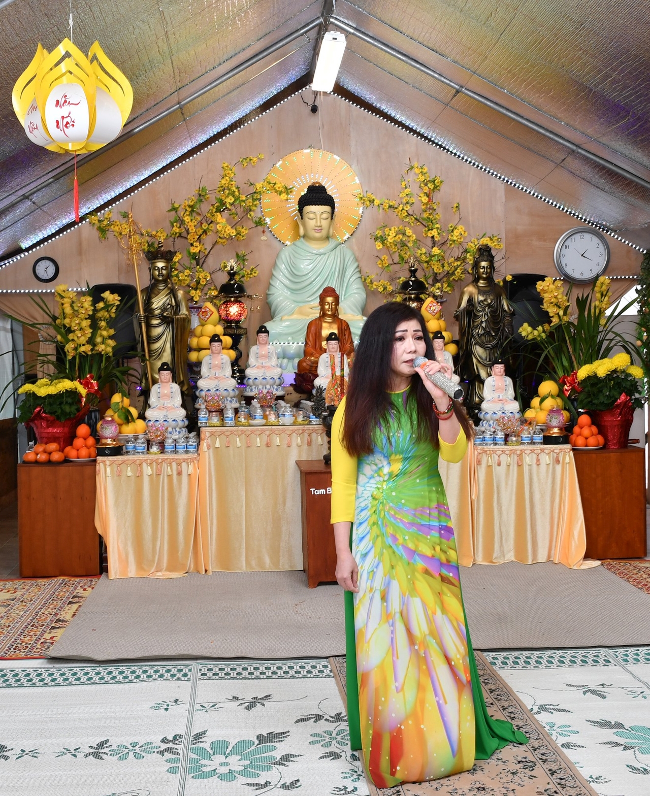 Đặc biệt, chương trình văn nghệ mừng Xuân do nhóm Hương Từ Bi phát tâm cúng dường mang những lời ca tiếng hát về đạo, về xuân hấp dẫn đông đảo Phật tử, đồng hương tham dự.