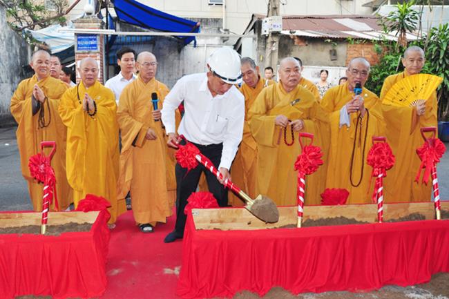 Buổi lễ Động thổ tuy mang tính cách nội bộ nhưng vô cùng trang nghiêm, có sự hiện diện quý báu của chư Tôn đức Giáo phẩm Trung ương Giáo Hội,Chư tôn đức Văn phòng II. TW, Thành hội và Chư tôn đức tỉnh Long An Hòa thượng Thích Minh Thiện- Trưởng Ban trị sự GHPGVN tỉnh Long An về chứng dự.